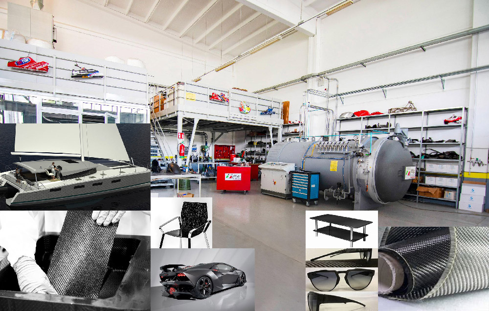 Si ottiene così un nuovo prodotto che non esiste in natura e che rappresenta la sintesi dei vari prodotti impiegati nella sua fabbricazione. I materiali compositi avanzati sviluppati direttamente per l’industria aerospaziale, in virtù delle loro caratteristiche uniche (meccaniche, fisiche, estetiche) trovano largo impiego nelle industrie del ciclo, motociclo, automobile, articoli sportivi, arredamento e illuminotecnica.